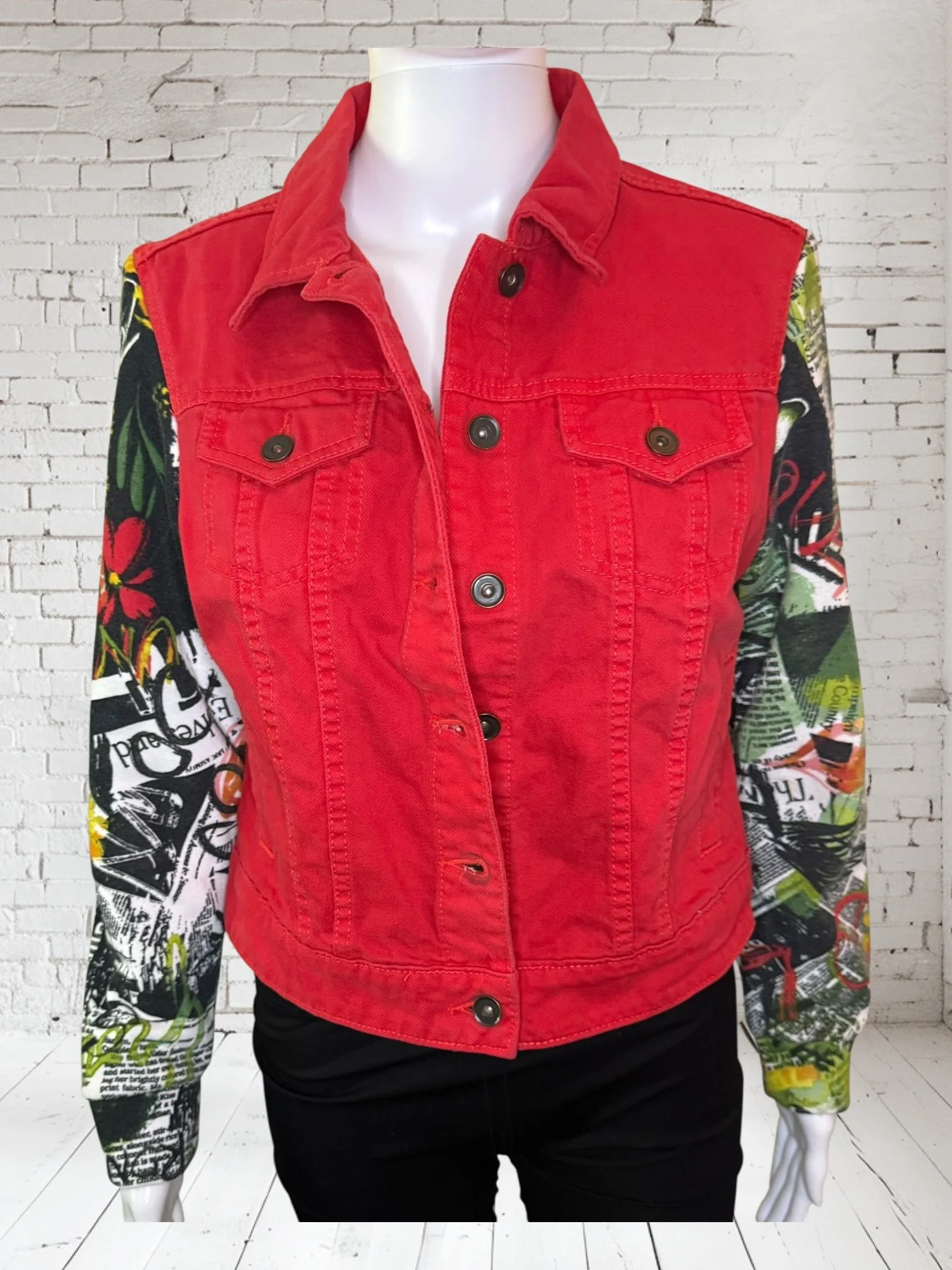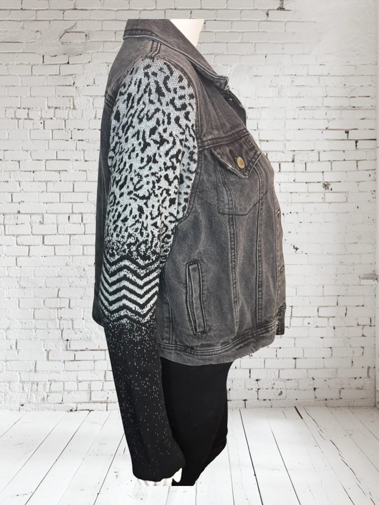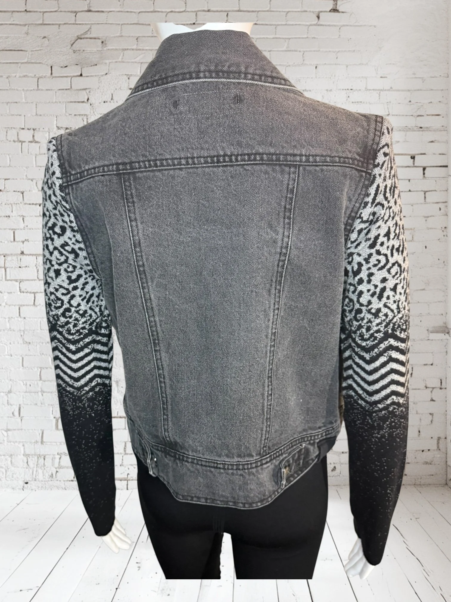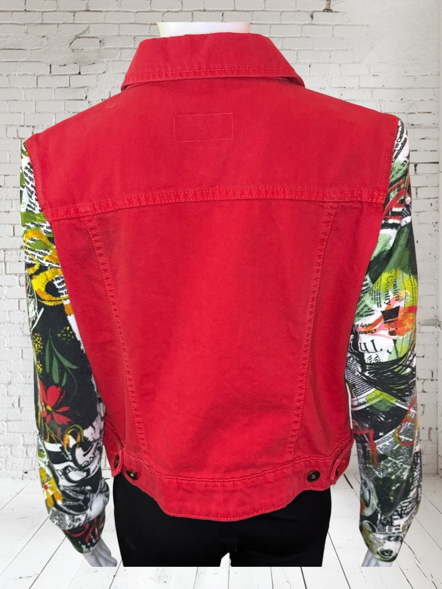 Categories: All Small Medium Large Extra Large + XXL SALE All | Small | Medium | Large | Extra Large + XXL | SALE | Quick View UPCYCLED Gray cowl neck sweater with pink reverse serge detailing $59.00 Quick View UPCYCLED Black & white animal print asymmetrical zip jacket- Size Large $59.00 Quick View UPCYCLED black denim jacket with geometric leopard print sleeves- Size Medium $129.00 Quick View UPCYCLED Military style denim jacket with daisy sleeves- Size Large $129.00 Quick View UPCYCLED Faux fur black and white vest with canvas/satin sleeves | Size Small $129.00 Quick View UPCYCLED Pale yellow corduroy hoodie with black boucle sleeves Size Medium $129.00 Quick View UPCYCLED Black babydoll with Animal print | Size XL $129.00 Quick View UPCYCLED Red denim jacket with graffiti sleeves | Size Medium $129.00 Quick View UPCYCLED Black velvet blazer with red & white Asian inspired sleeves | Size Large $129.00 Quick View UPCYCLED Olive green leopard print and denim jacket | Size Medium $129.00 Quick View UPCYCLED Blue denim blazer with magenta bishop sleeves | Size Medium $129.00 Quick View UPCYCLED Pink denim shacket with black & white splatter sleeves $129.00 Quick View UPCYCLED Animal faux fur vest w/ ruffled glitter sweater sleeves | Size Small $129.00 Quick View UPCYCLED Military green canvas jacket w/ Black & White sweater sleeves | Size Small $129.00 Quick View SOLD- Denim and microfiber ruffle sleeves $129.00 Sold out Quick View UPCYCLED Black canvas & satin jacket with leopard print sleeves $129.00 Quick View UPCYCLED white bleached denim jacket with pleated blue floral sleeves | Size Medium $129.00 Quick View Upcycled black corduroy jacket with striped sweater sleeves | Size Large $129.00