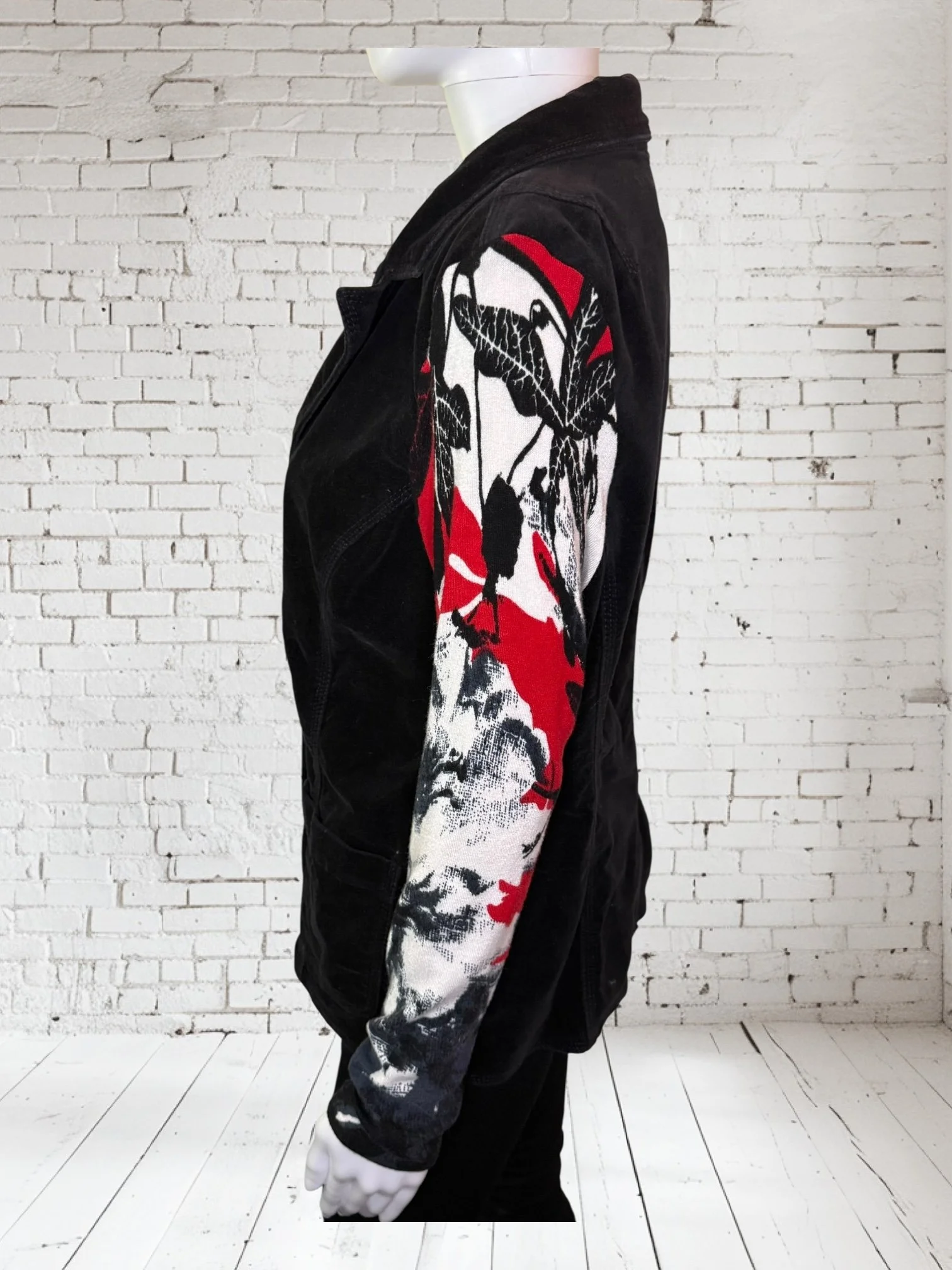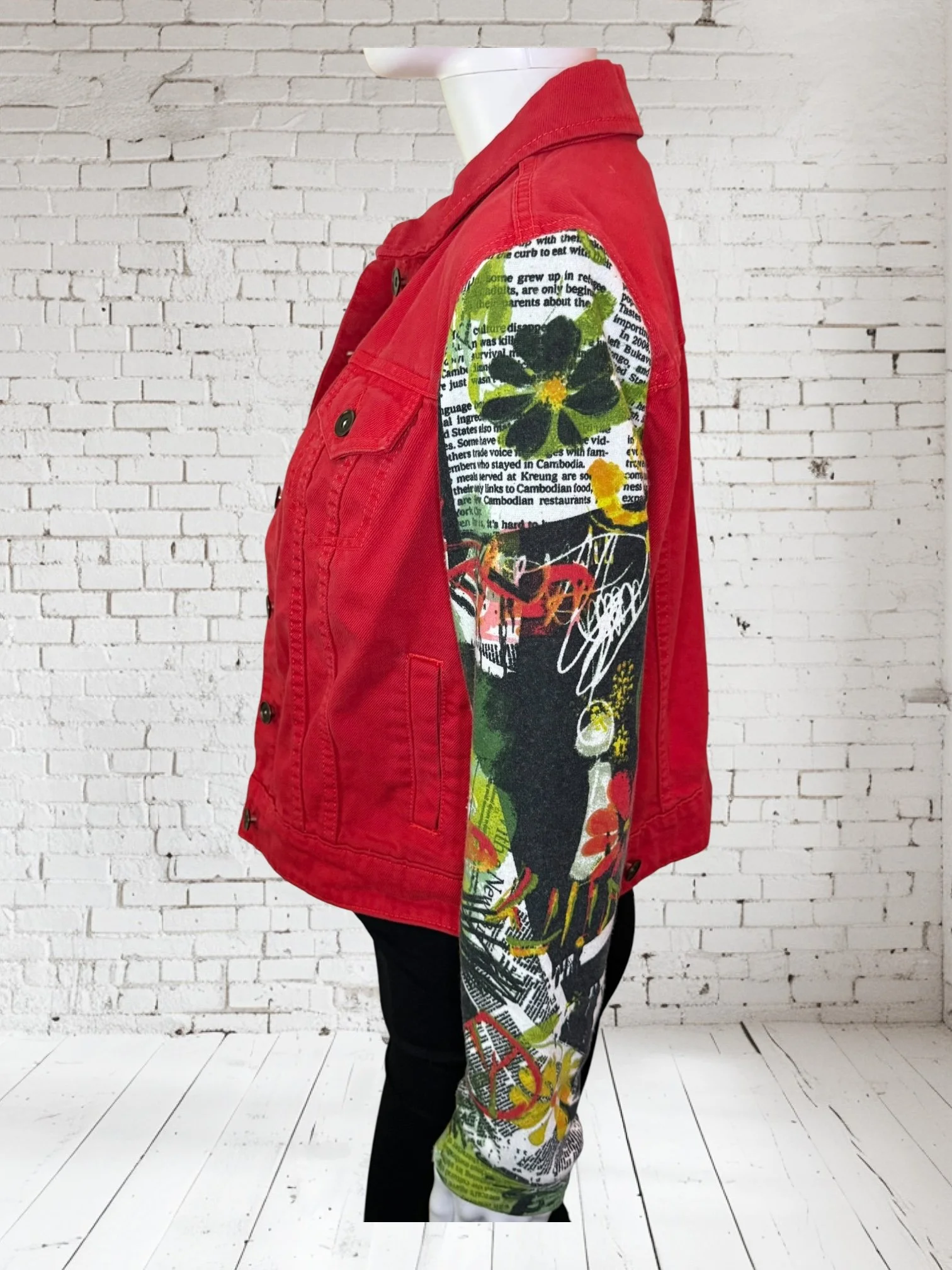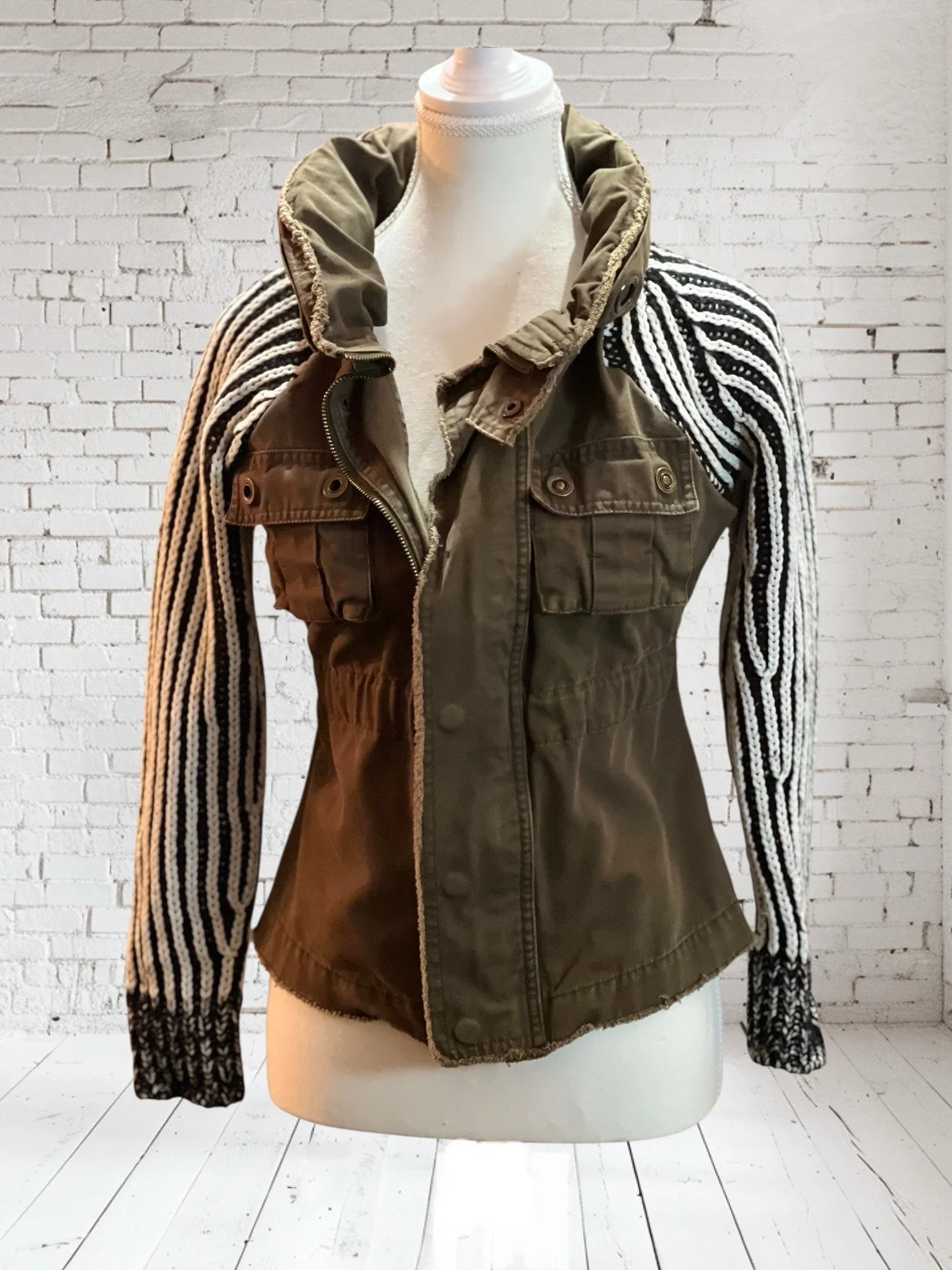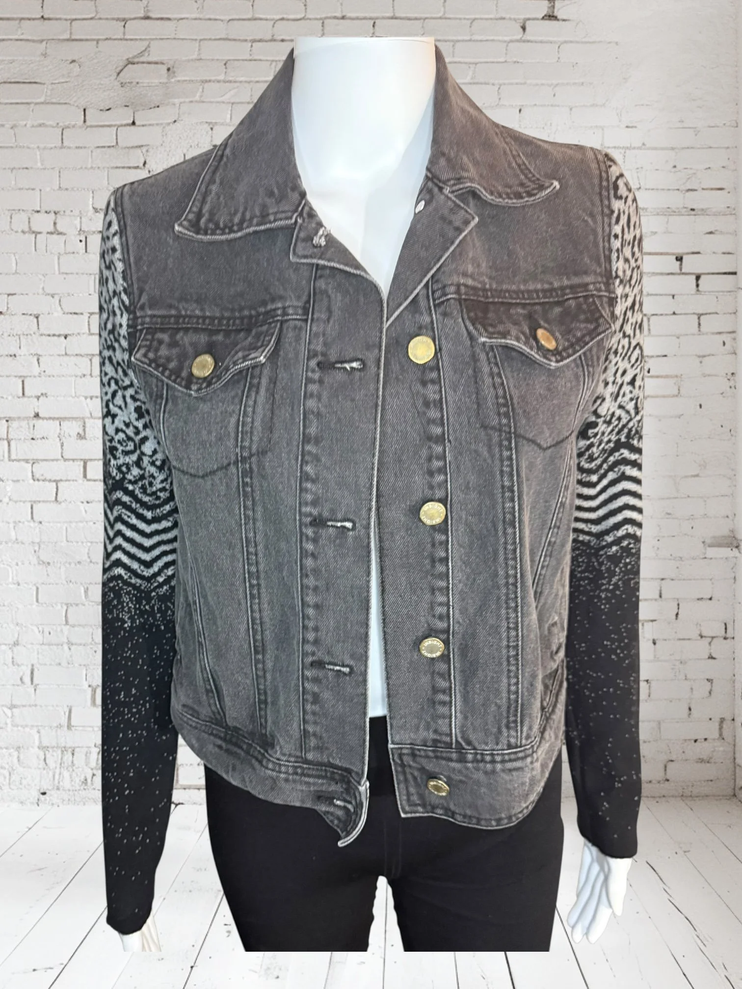 Categories: All Small Medium Large Extra Large + XXL SALE All | Small | Medium | Large | Extra Large + XXL | SALE | Quick View UPCYCLED Gray cowl neck sweater with pink reverse serge detailing $59.00 Quick View UPCYCLED Black & white animal print asymmetrical zip jacket- Size Large $59.00 Quick View UPCYCLED black denim jacket with geometric leopard print sleeves- Size Medium $129.00 Quick View UPCYCLED Military style denim jacket with daisy sleeves- Size Large $129.00 Quick View UPCYCLED Faux fur black and white vest with canvas/satin sleeves | Size Small $129.00 Quick View UPCYCLED Pale yellow corduroy hoodie with black boucle sleeves Size Medium $129.00 Quick View UPCYCLED Black babydoll with Animal print | Size XL $129.00 Quick View UPCYCLED Red denim jacket with graffiti sleeves | Size Medium $129.00 Quick View UPCYCLED Black velvet blazer with red & white Asian inspired sleeves | Size Large $129.00 Quick View UPCYCLED Olive green leopard print and denim jacket | Size Medium $129.00 Quick View UPCYCLED Blue denim blazer with magenta bishop sleeves | Size Medium $129.00 Quick View UPCYCLED Pink denim shacket with black & white splatter sleeves $129.00 Quick View UPCYCLED Animal faux fur vest w/ ruffled glitter sweater sleeves | Size Small $129.00 Quick View UPCYCLED Military green canvas jacket w/ Black & White sweater sleeves | Size Small $129.00 Quick View SOLD- Denim and microfiber ruffle sleeves $129.00 Sold out Quick View UPCYCLED Black canvas & satin jacket with leopard print sleeves $129.00 Quick View UPCYCLED white bleached denim jacket with pleated blue floral sleeves | Size Medium $129.00 Quick View Upcycled black corduroy jacket with striped sweater sleeves | Size Large $129.00