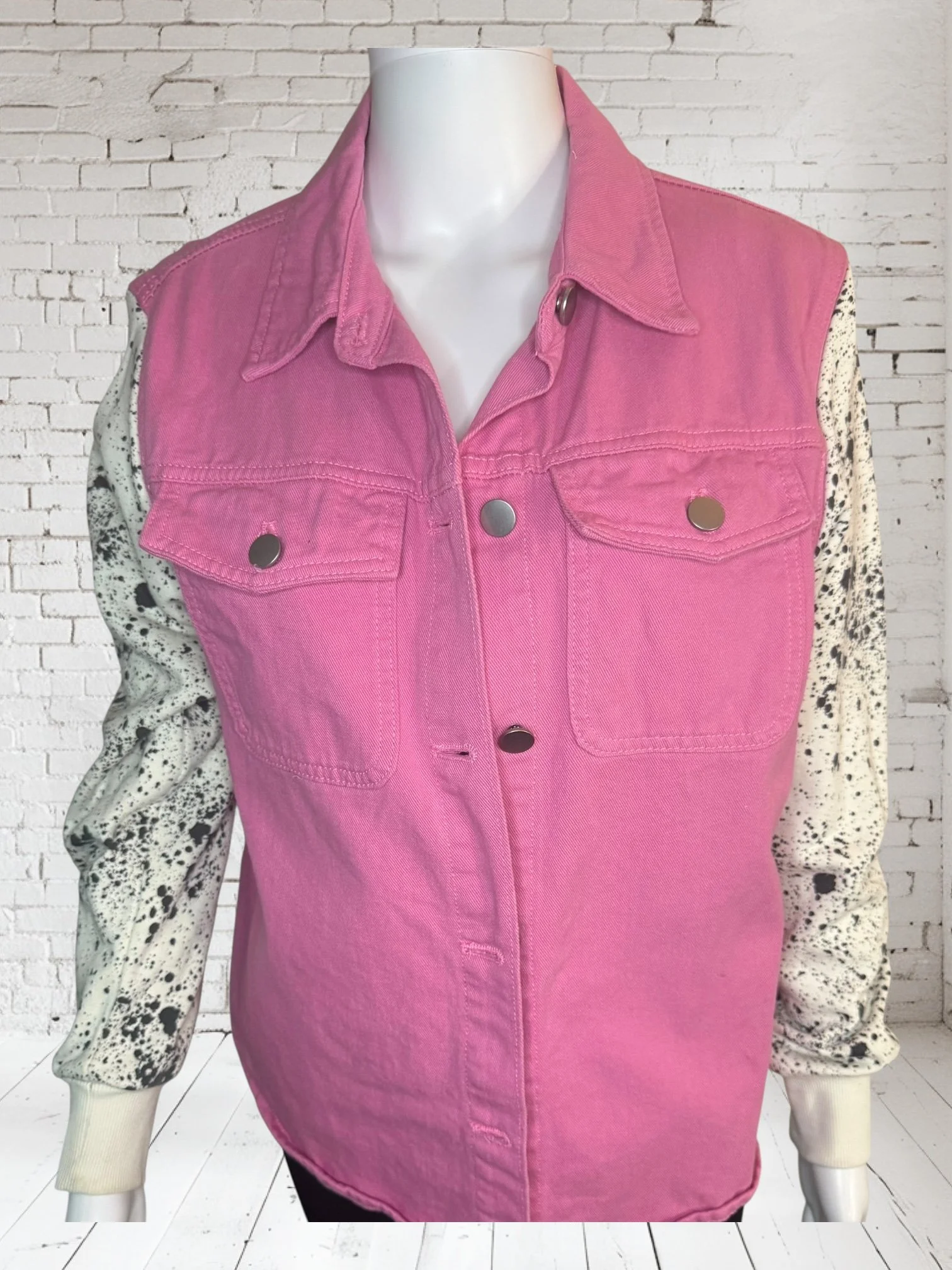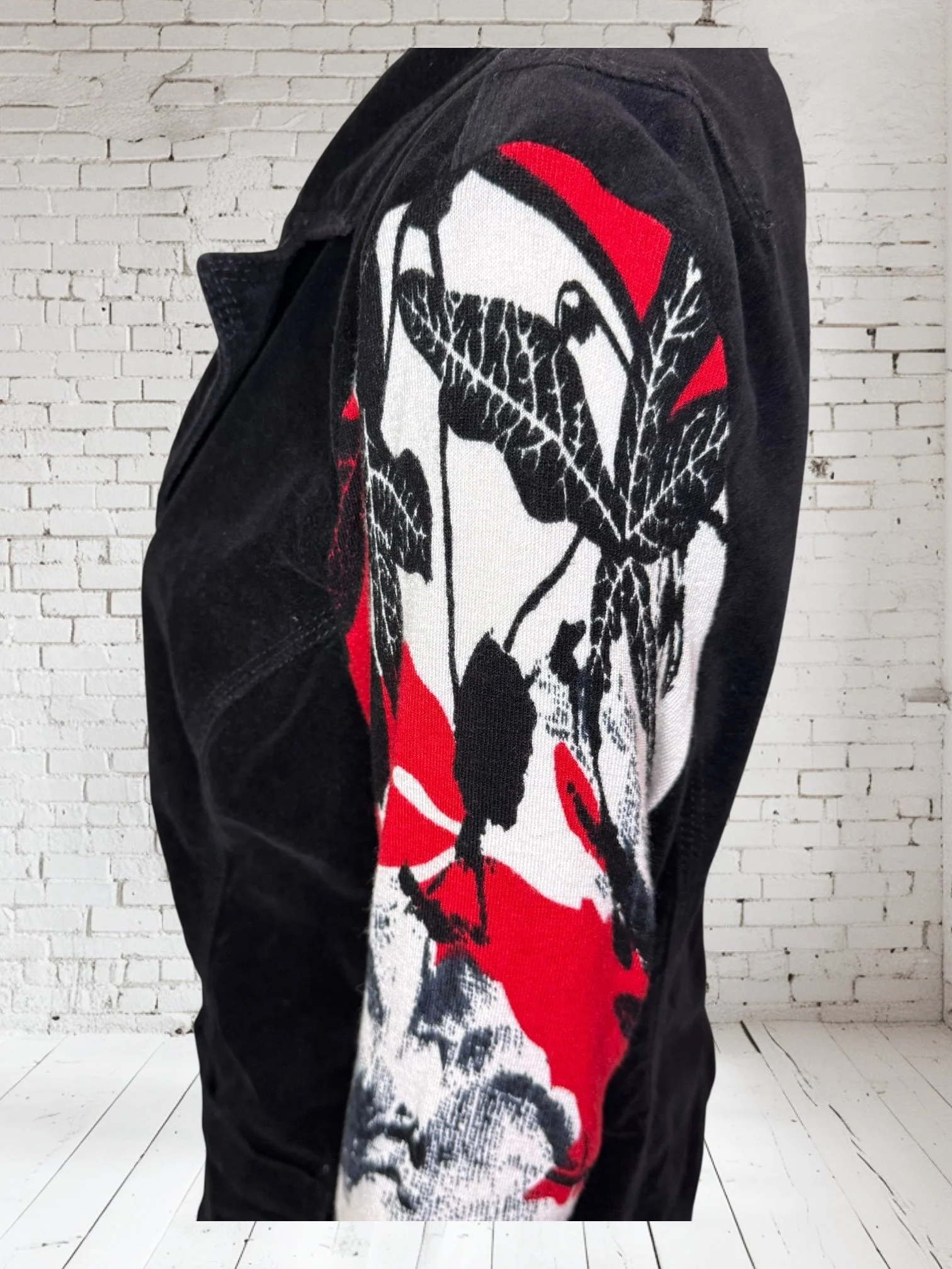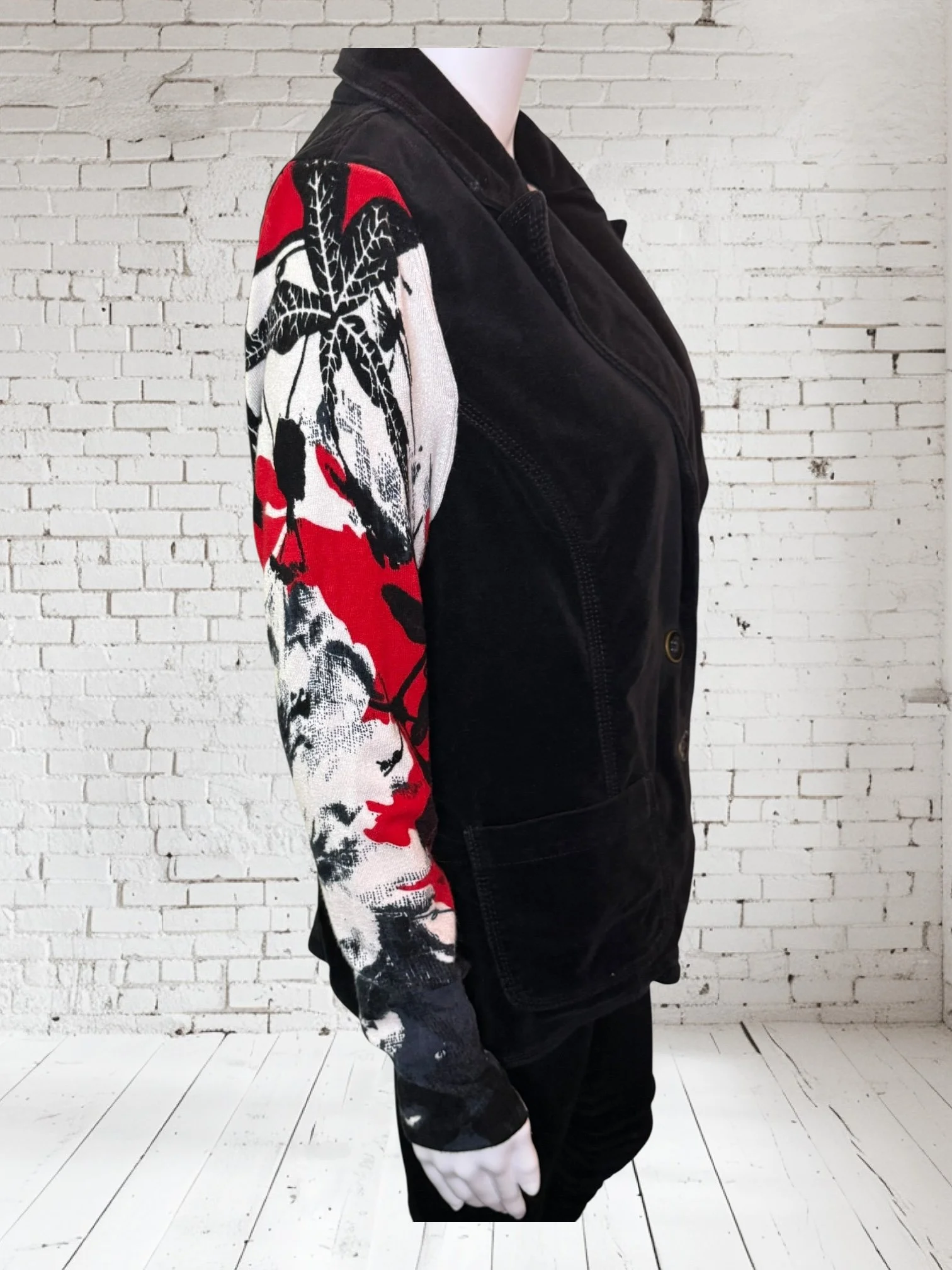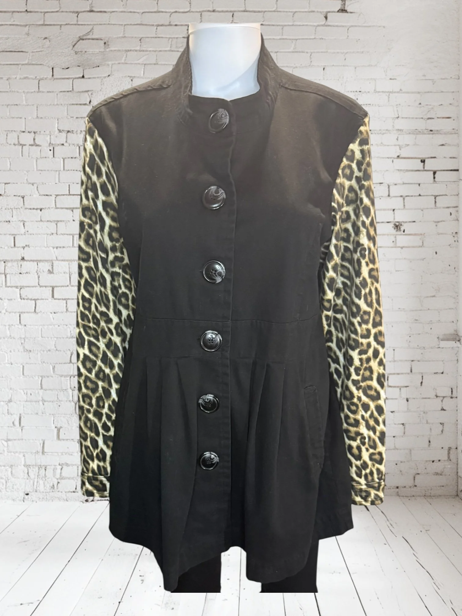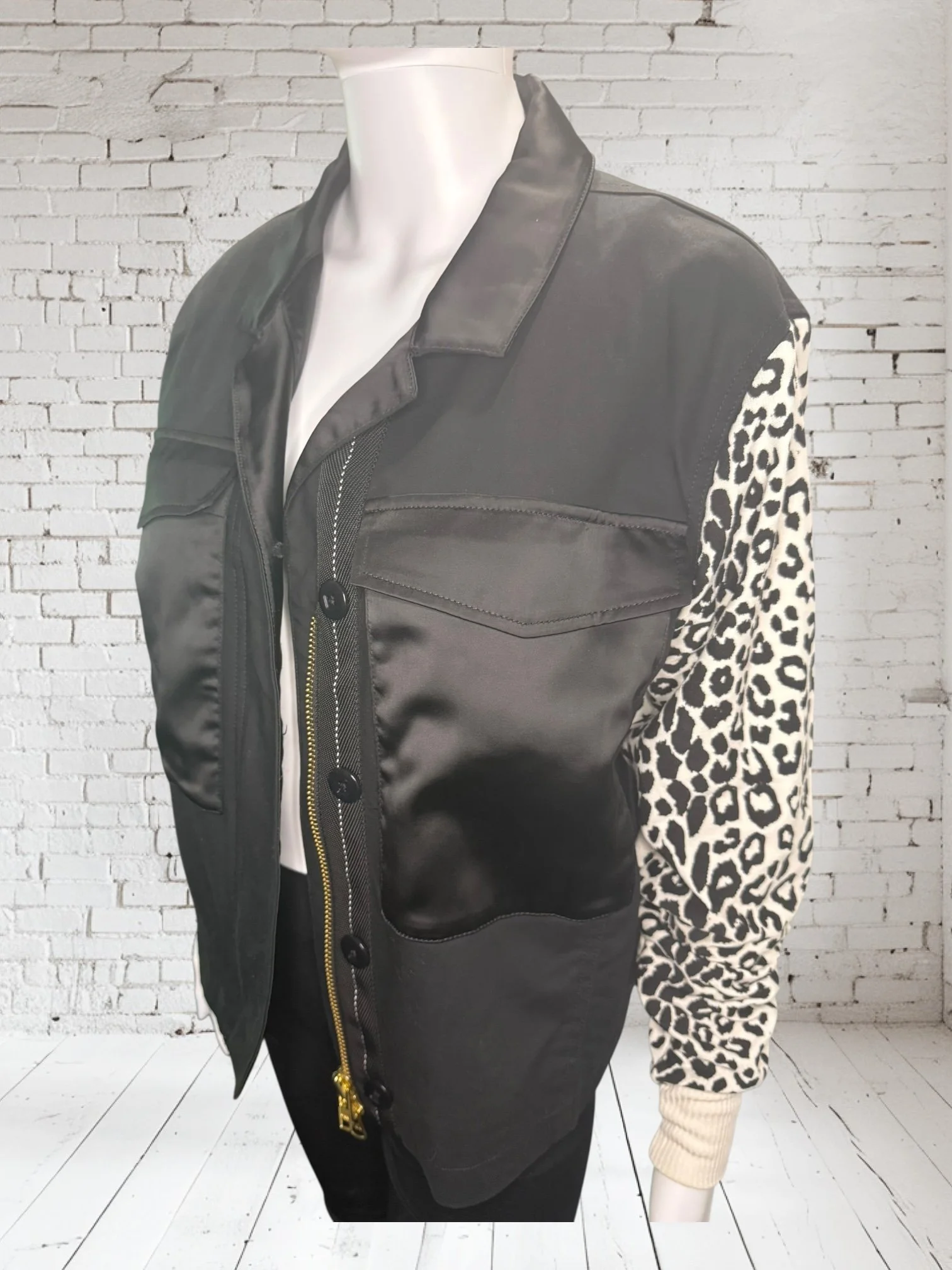 Categories: All Small Medium Large Extra Large + XXL SALE All | Small | Medium | Large | Extra Large + XXL | SALE | Quick View UPCYCLED Gray cowl neck sweater with pink reverse serge detailing $59.00 Quick View UPCYCLED Black & white animal print asymmetrical zip jacket- Size Large $59.00 Quick View UPCYCLED black denim jacket with geometric leopard print sleeves- Size Medium $129.00 Quick View UPCYCLED Military style denim jacket with daisy sleeves- Size Large $129.00 Quick View UPCYCLED Faux fur black and white vest with canvas/satin sleeves | Size Small $129.00 Quick View UPCYCLED Pale yellow corduroy hoodie with black boucle sleeves Size Medium $129.00 Quick View UPCYCLED Black babydoll with Animal print | Size XL $129.00 Quick View UPCYCLED Red denim jacket with graffiti sleeves | Size Medium $129.00 Quick View UPCYCLED Black velvet blazer with red & white Asian inspired sleeves | Size Large $129.00 Quick View UPCYCLED Olive green leopard print and denim jacket | Size Medium $129.00 Quick View UPCYCLED Blue denim blazer with magenta bishop sleeves | Size Medium $129.00 Quick View UPCYCLED Pink denim shacket with black & white splatter sleeves $129.00 Quick View UPCYCLED Animal faux fur vest w/ ruffled glitter sweater sleeves | Size Small $129.00 Quick View UPCYCLED Military green canvas jacket w/ Black & White sweater sleeves | Size Small $129.00 Quick View SOLD- Denim and microfiber ruffle sleeves $129.00 Sold out Quick View UPCYCLED Black canvas & satin jacket with leopard print sleeves $129.00 Quick View UPCYCLED white bleached denim jacket with pleated blue floral sleeves | Size Medium $129.00 Quick View Upcycled black corduroy jacket with striped sweater sleeves | Size Large $129.00