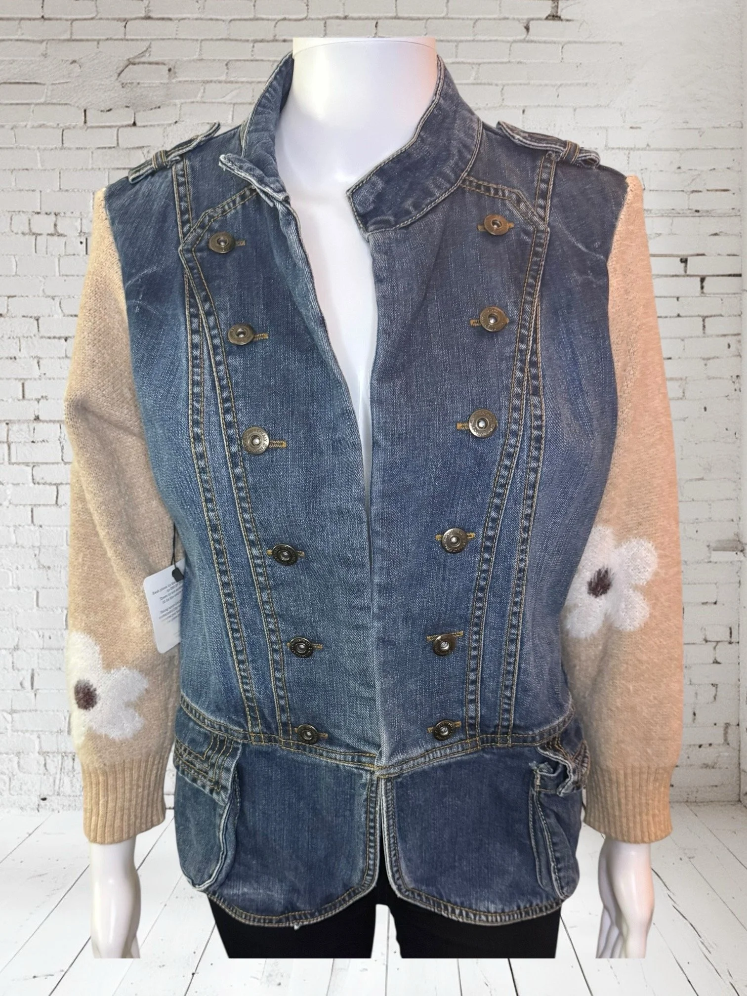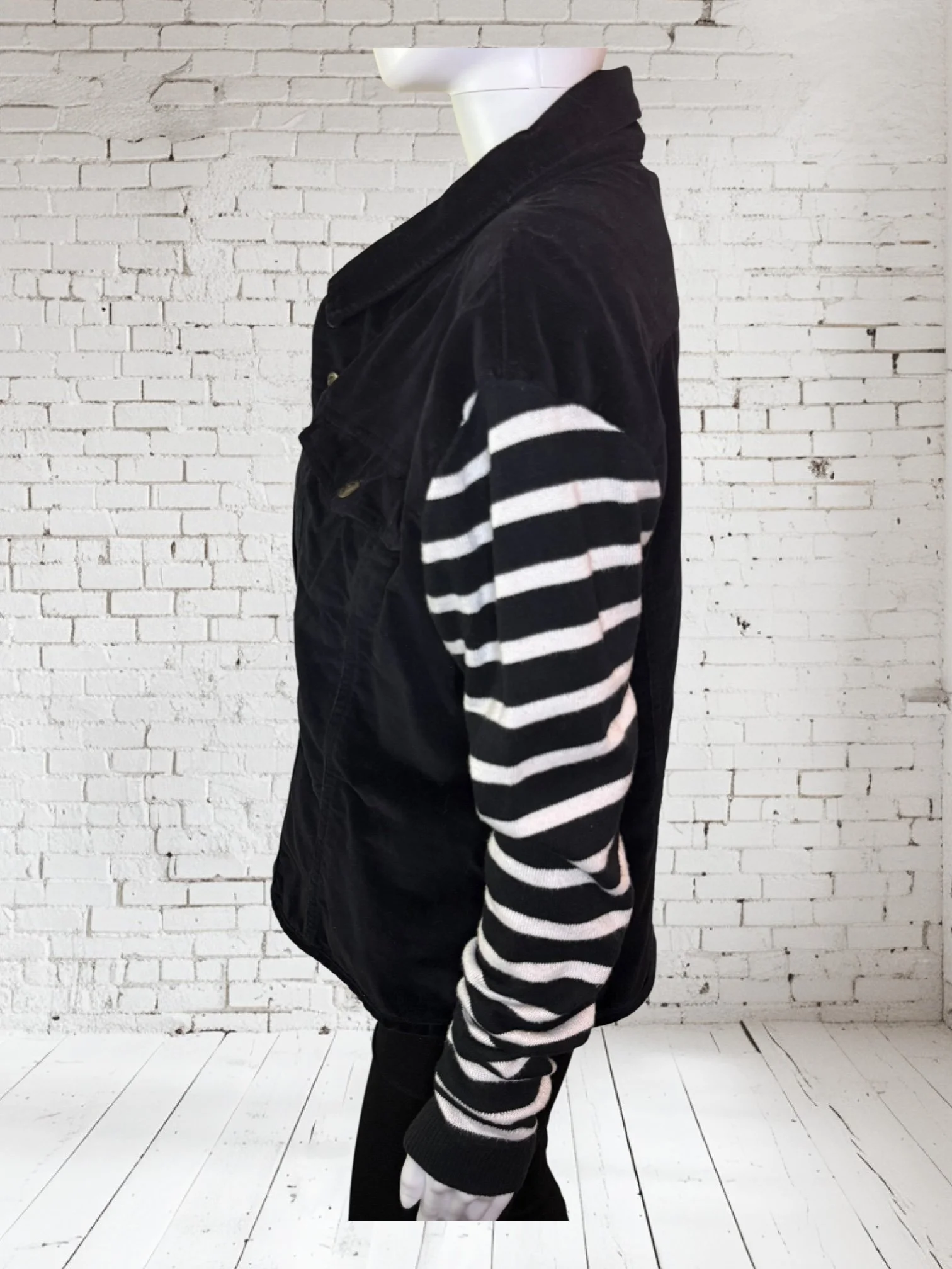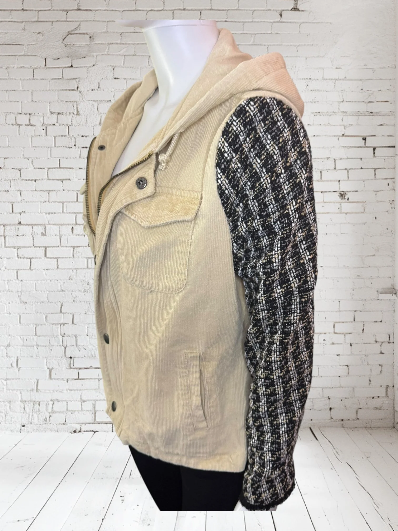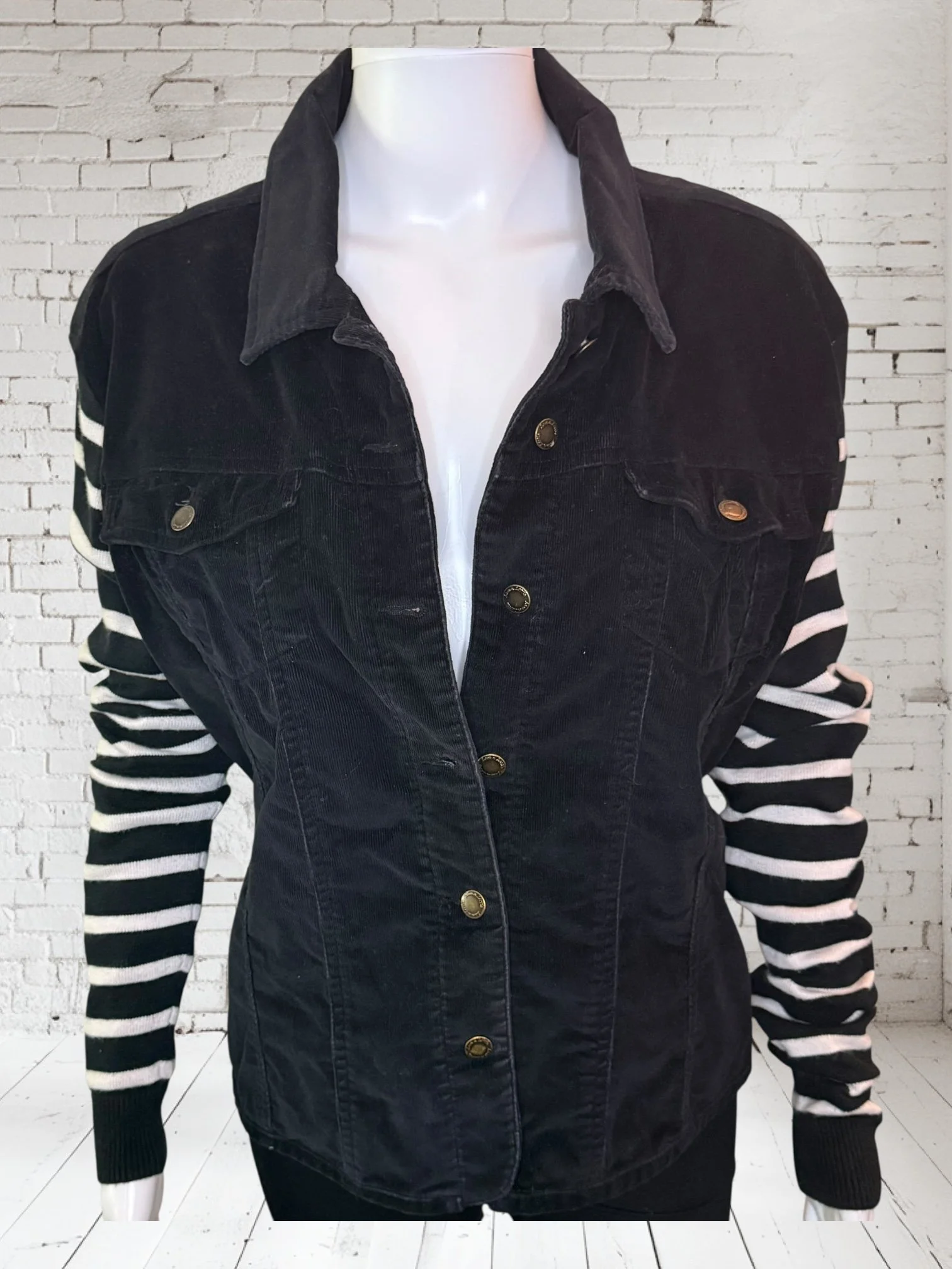 Categories: All Small Medium Large Extra Large + XXL SALE All | Small | Medium | Large | Extra Large + XXL | SALE | Quick View UPCYCLED Gray cowl neck sweater with pink reverse serge detailing $59.00 Quick View UPCYCLED Black & white animal print asymmetrical zip jacket- Size Large $59.00 Quick View UPCYCLED black denim jacket with geometric leopard print sleeves- Size Medium $129.00 Quick View UPCYCLED Military style denim jacket with daisy sleeves- Size Large $129.00 Quick View UPCYCLED Faux fur black and white vest with canvas/satin sleeves | Size Small $129.00 Quick View UPCYCLED Pale yellow corduroy hoodie with black boucle sleeves Size Medium $129.00 Quick View UPCYCLED Black babydoll with Animal print | Size XL $129.00 Quick View UPCYCLED Red denim jacket with graffiti sleeves | Size Medium $129.00 Quick View UPCYCLED Black velvet blazer with red & white Asian inspired sleeves | Size Large $129.00 Quick View UPCYCLED Olive green leopard print and denim jacket | Size Medium $129.00 Quick View UPCYCLED Blue denim blazer with magenta bishop sleeves | Size Medium $129.00 Quick View UPCYCLED Pink denim shacket with black & white splatter sleeves $129.00 Quick View UPCYCLED Animal faux fur vest w/ ruffled glitter sweater sleeves | Size Small $129.00 Quick View UPCYCLED Military green canvas jacket w/ Black & White sweater sleeves | Size Small $129.00 Quick View SOLD- Denim and microfiber ruffle sleeves $129.00 Sold out Quick View UPCYCLED Black canvas & satin jacket with leopard print sleeves $129.00 Quick View UPCYCLED white bleached denim jacket with pleated blue floral sleeves | Size Medium $129.00 Quick View Upcycled black corduroy jacket with striped sweater sleeves | Size Large $129.00