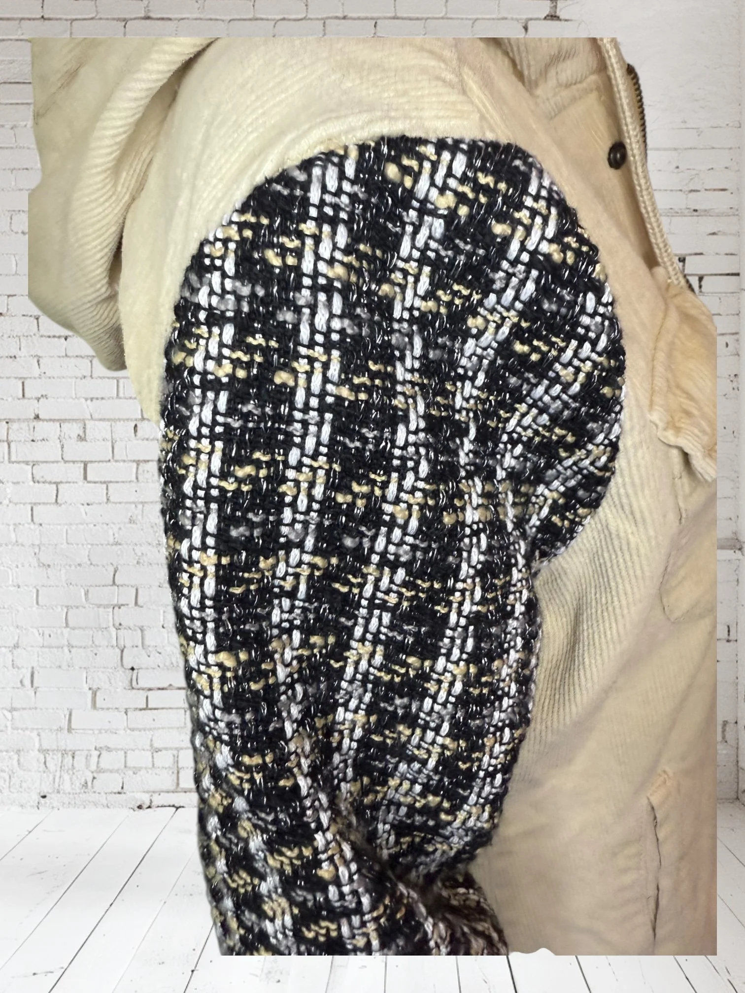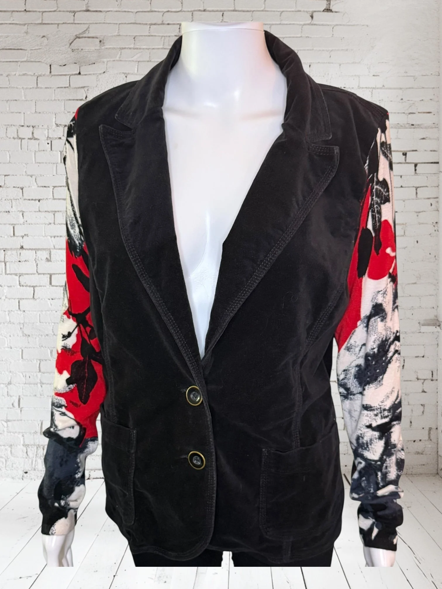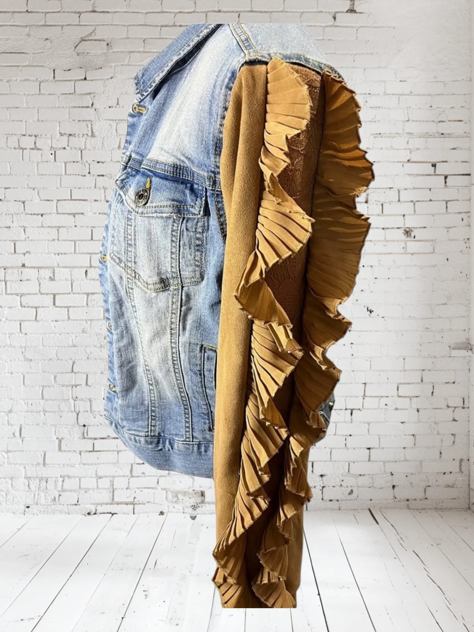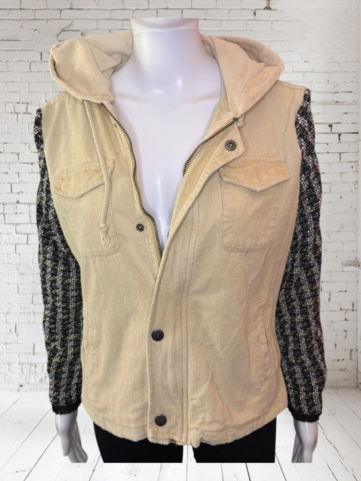 Categories: All Small Medium Large Extra Large + XXL SALE All | Small | Medium | Large | Extra Large + XXL | SALE | Quick View UPCYCLED Gray cowl neck sweater with pink reverse serge detailing $59.00 Quick View UPCYCLED Black & white animal print asymmetrical zip jacket- Size Large $59.00 Quick View UPCYCLED black denim jacket with geometric leopard print sleeves- Size Medium $129.00 Quick View UPCYCLED Military style denim jacket with daisy sleeves- Size Large $129.00 Quick View UPCYCLED Faux fur black and white vest with canvas/satin sleeves | Size Small $129.00 Quick View UPCYCLED Pale yellow corduroy hoodie with black boucle sleeves Size Medium $129.00 Quick View UPCYCLED Black babydoll with Animal print | Size XL $129.00 Quick View UPCYCLED Red denim jacket with graffiti sleeves | Size Medium $129.00 Quick View UPCYCLED Black velvet blazer with red & white Asian inspired sleeves | Size Large $129.00 Quick View UPCYCLED Olive green leopard print and denim jacket | Size Medium $129.00 Quick View UPCYCLED Blue denim blazer with magenta bishop sleeves | Size Medium $129.00 Quick View UPCYCLED Pink denim shacket with black & white splatter sleeves $129.00 Quick View UPCYCLED Animal faux fur vest w/ ruffled glitter sweater sleeves | Size Small $129.00 Quick View UPCYCLED Military green canvas jacket w/ Black & White sweater sleeves | Size Small $129.00 Quick View SOLD- Denim and microfiber ruffle sleeves $129.00 Sold out Quick View UPCYCLED Black canvas & satin jacket with leopard print sleeves $129.00 Quick View UPCYCLED white bleached denim jacket with pleated blue floral sleeves | Size Medium $129.00 Quick View Upcycled black corduroy jacket with striped sweater sleeves | Size Large $129.00